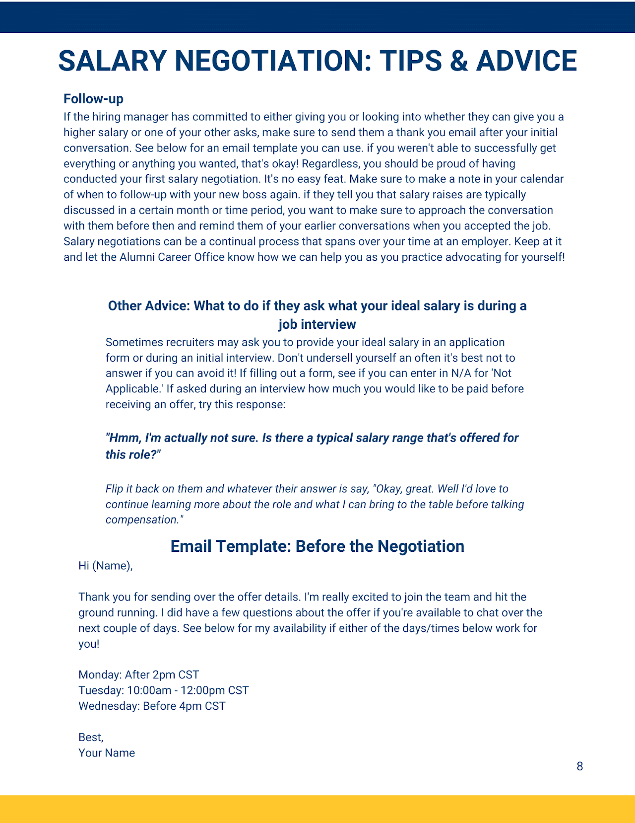 Utilize these resources as you prepare to apply for future internship/job opportunities. These are resources designed to assist you in your professional career development.
