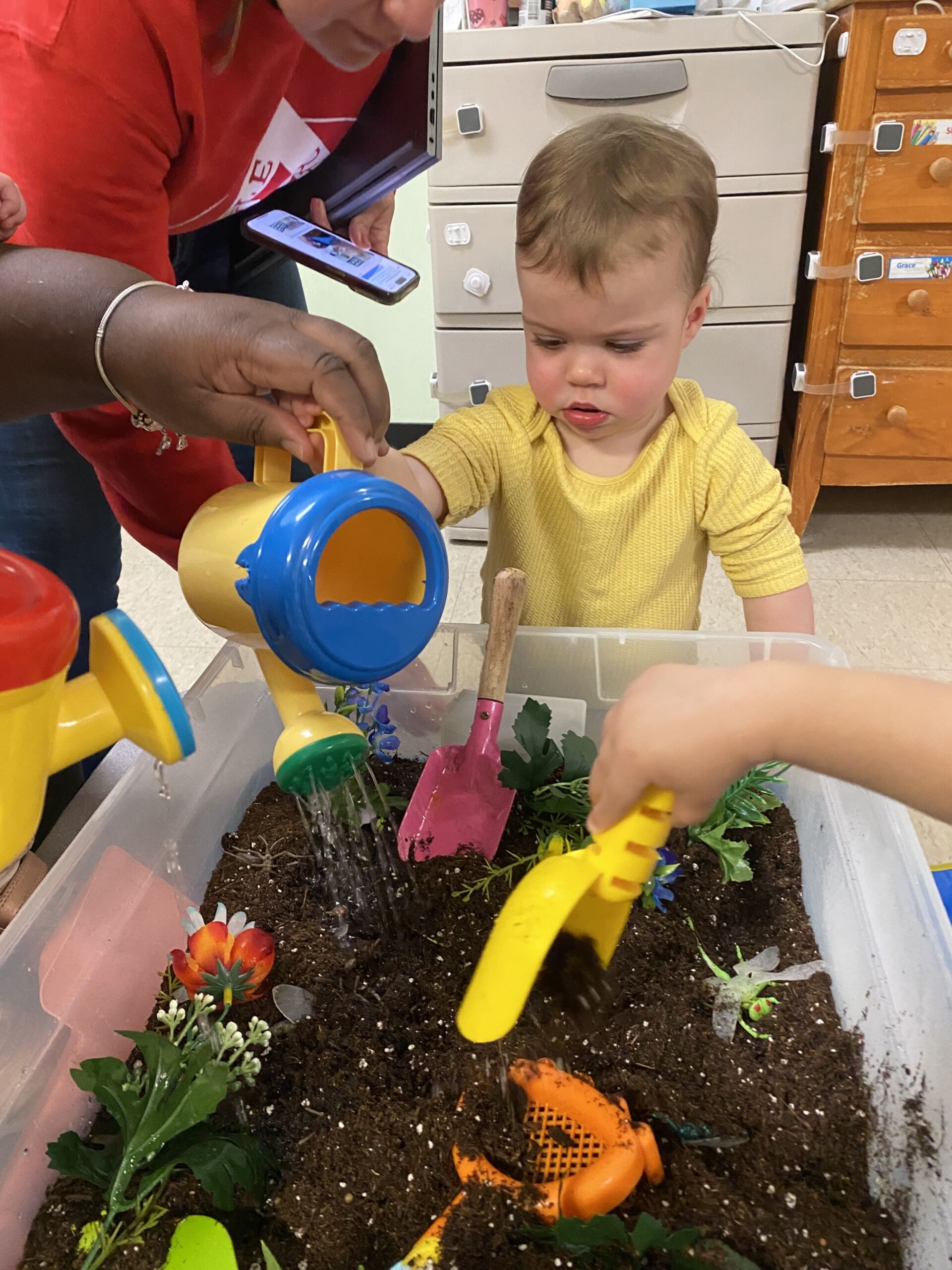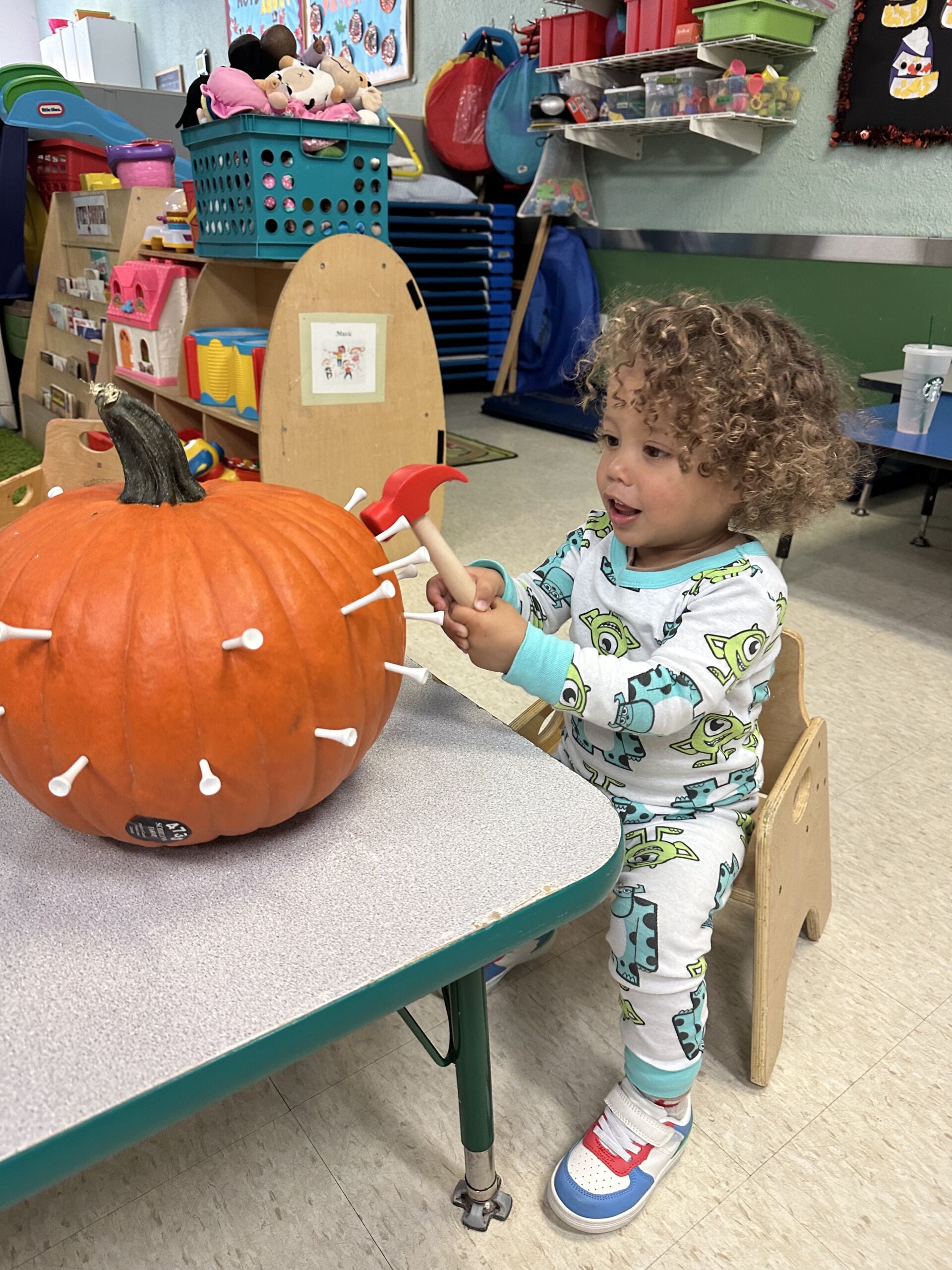 We combine the theme of the month with the kids’ interests surrounding that theme to develop our lessons and activities. For our three older classrooms, we also incorporate specific learning goals each week such as a letter, color, number, shape and texture of the week.